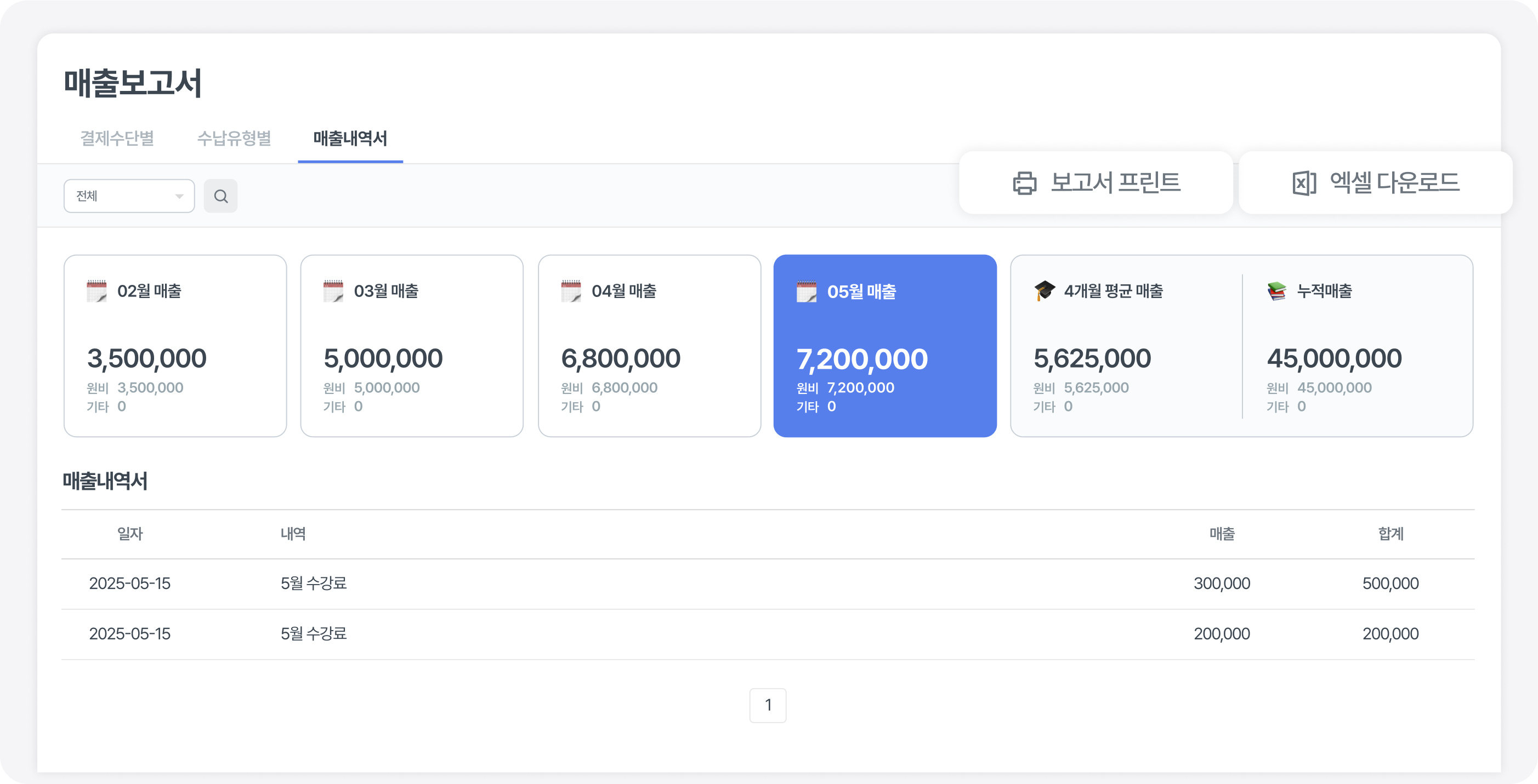 엑셀은 이제 그만! 회계, 원생 등 학원 관리는 이제 수학백서로 간편하게 관리하세요