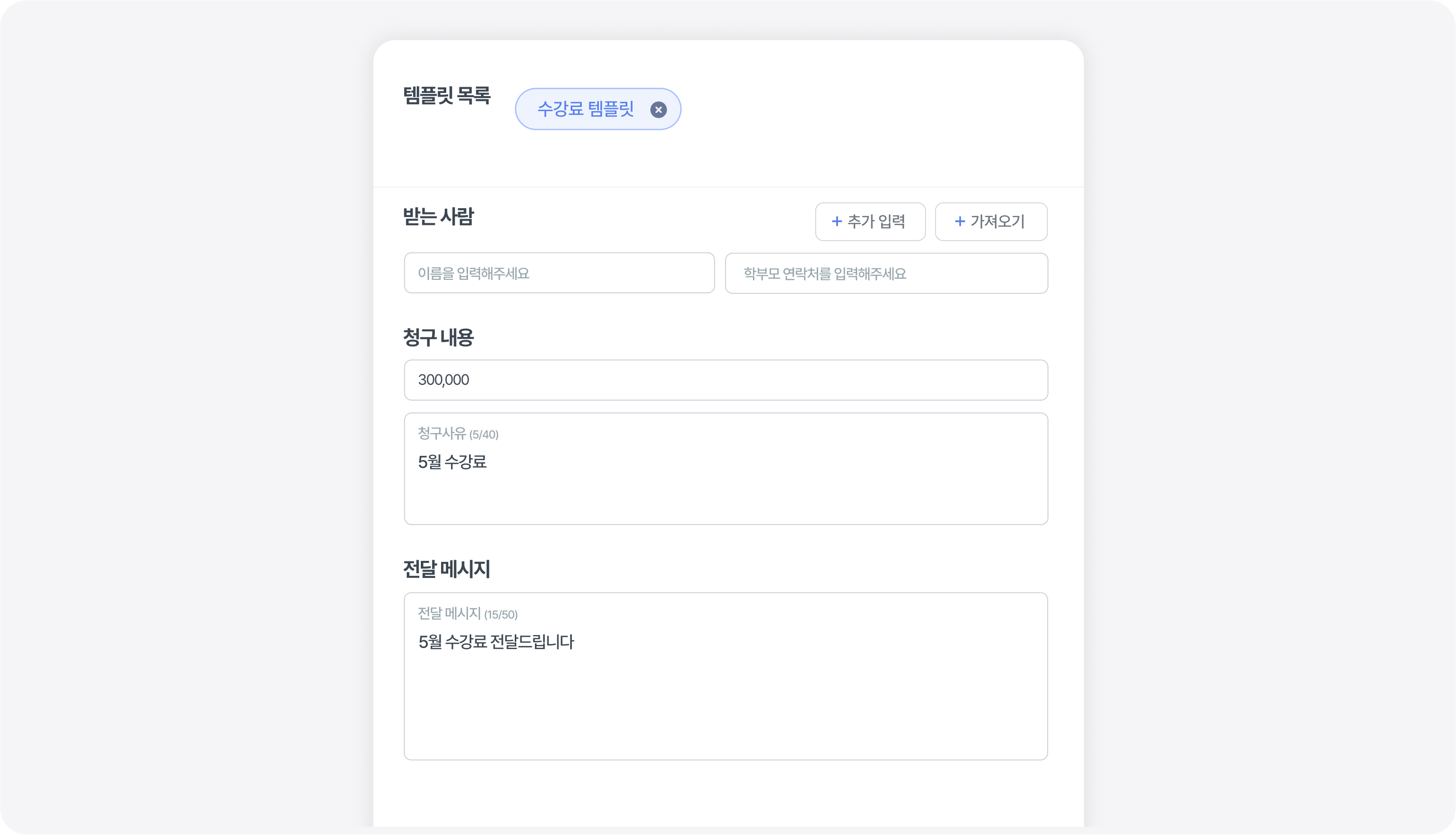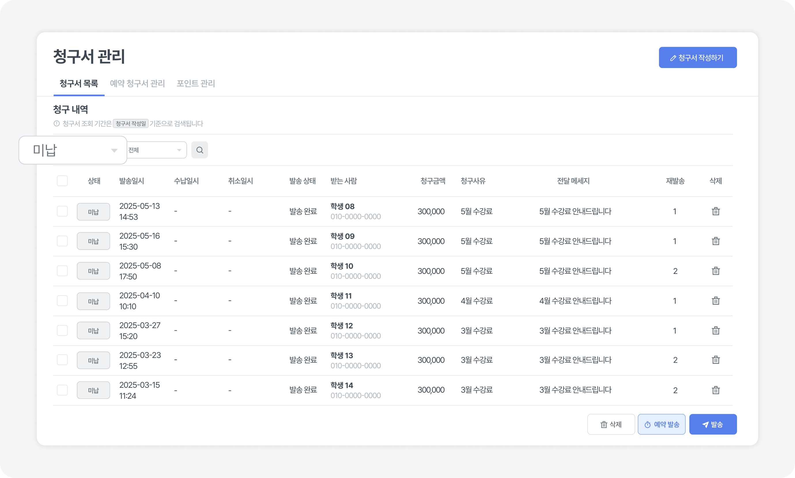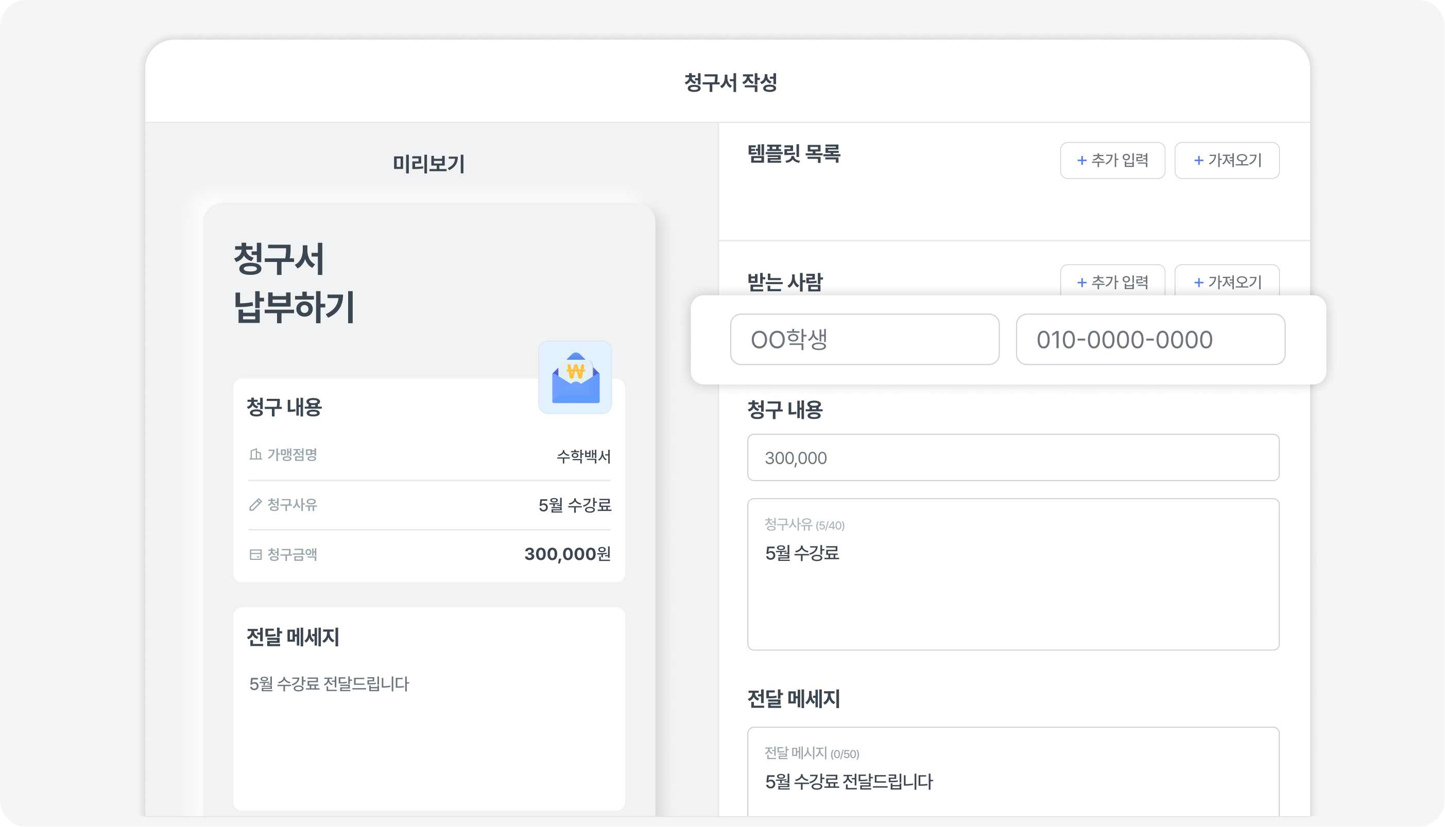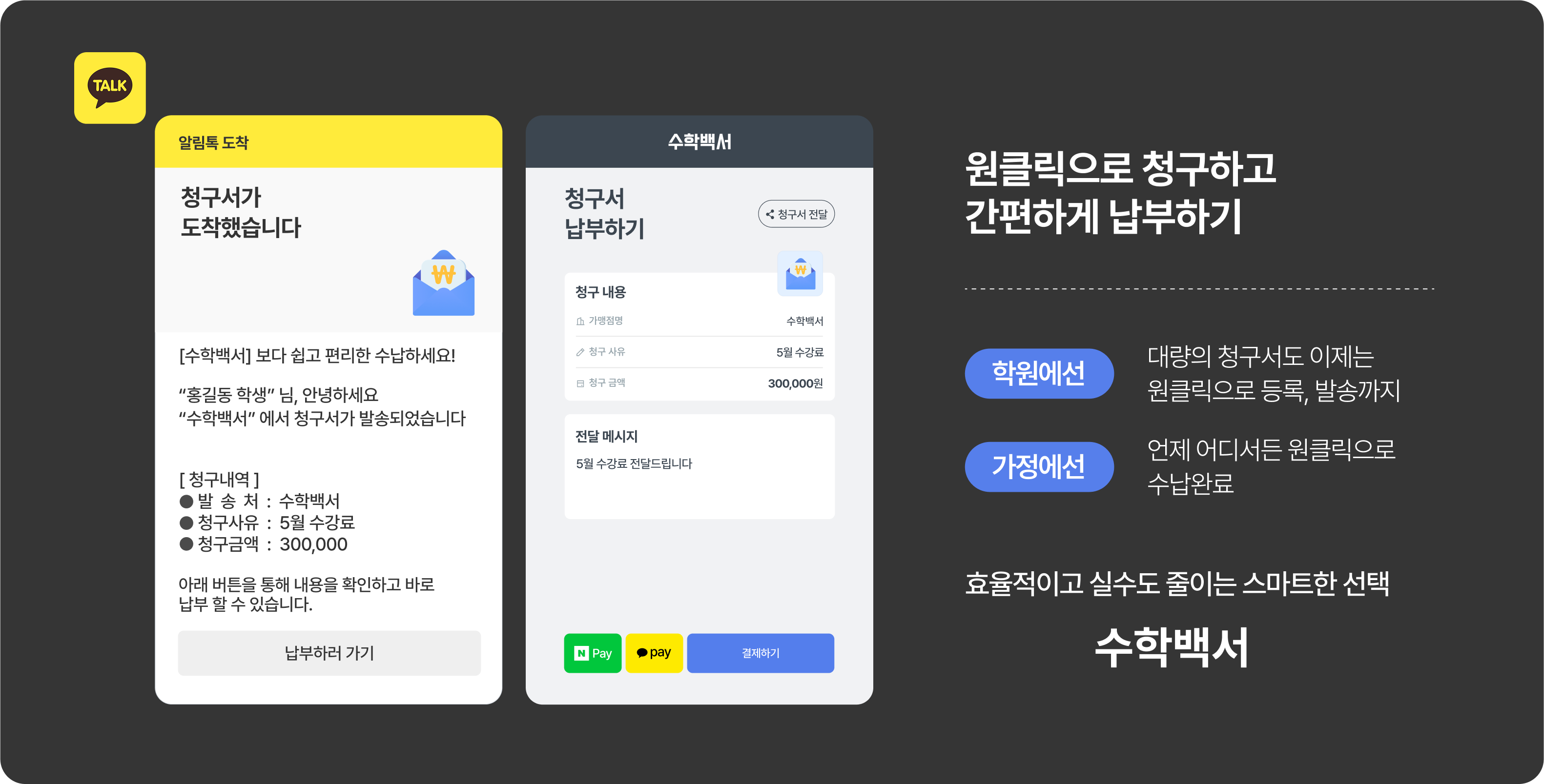 학원비, 클릭 한 번으로 청구서 발송부터 수납까지 한 번에