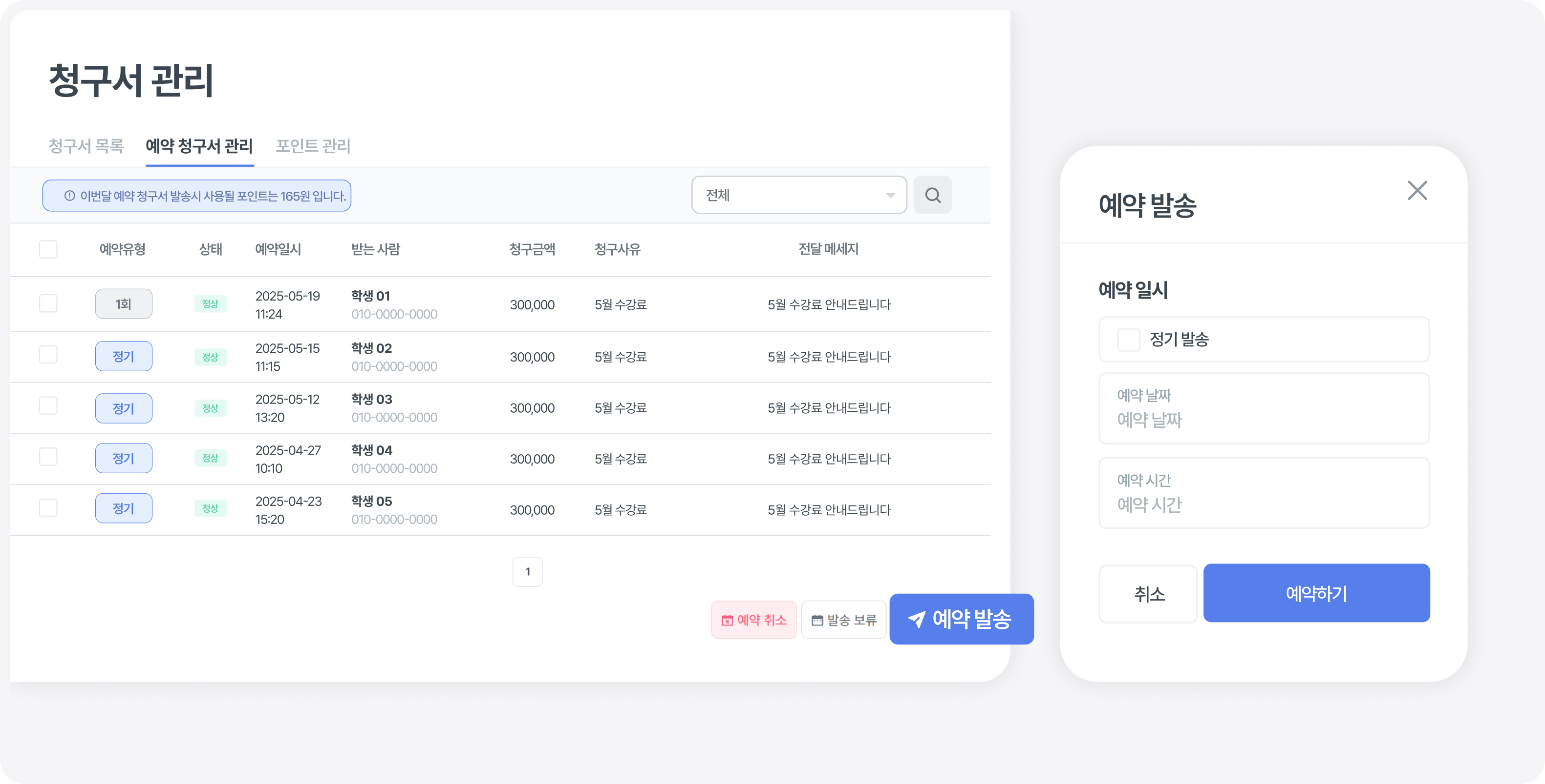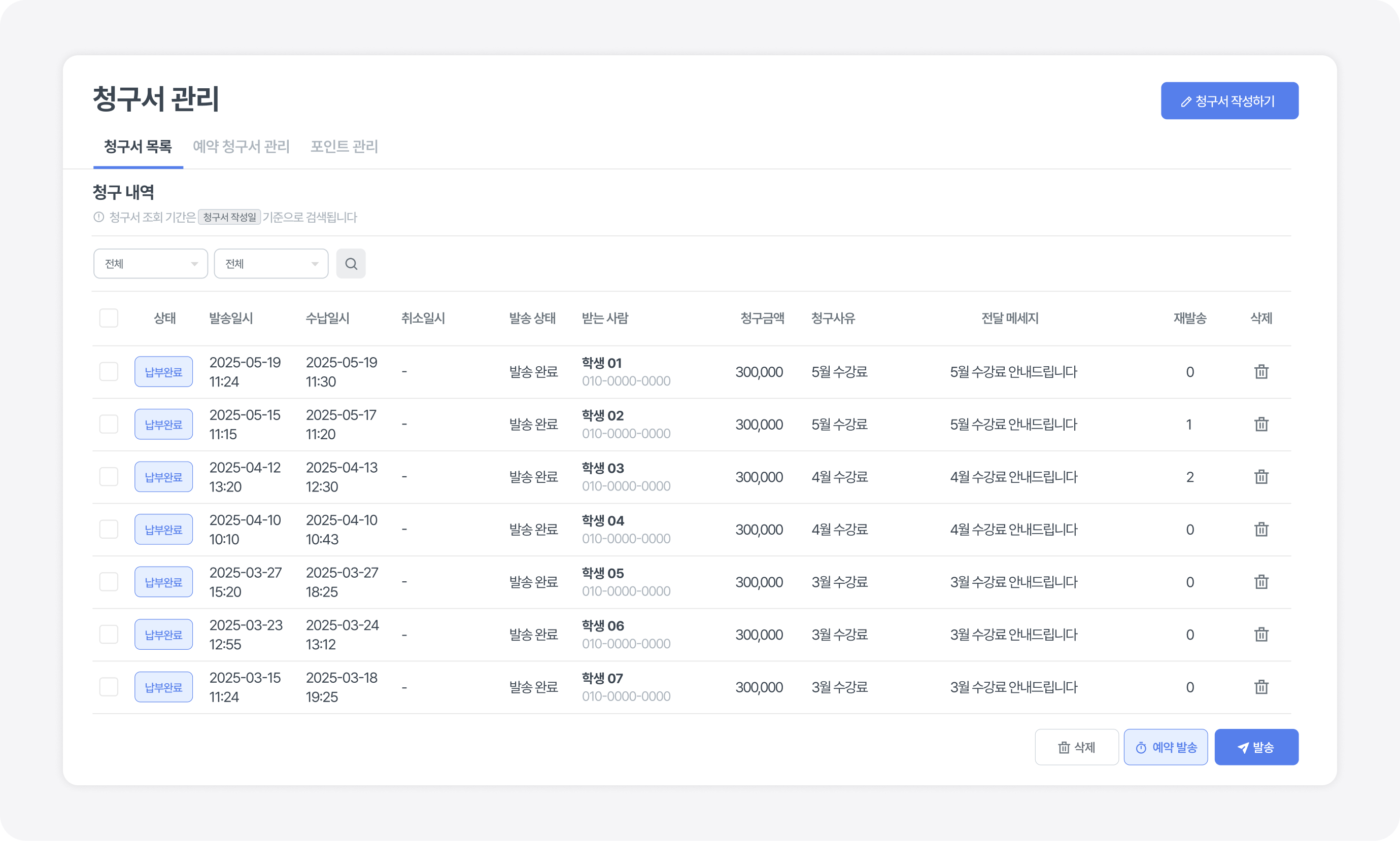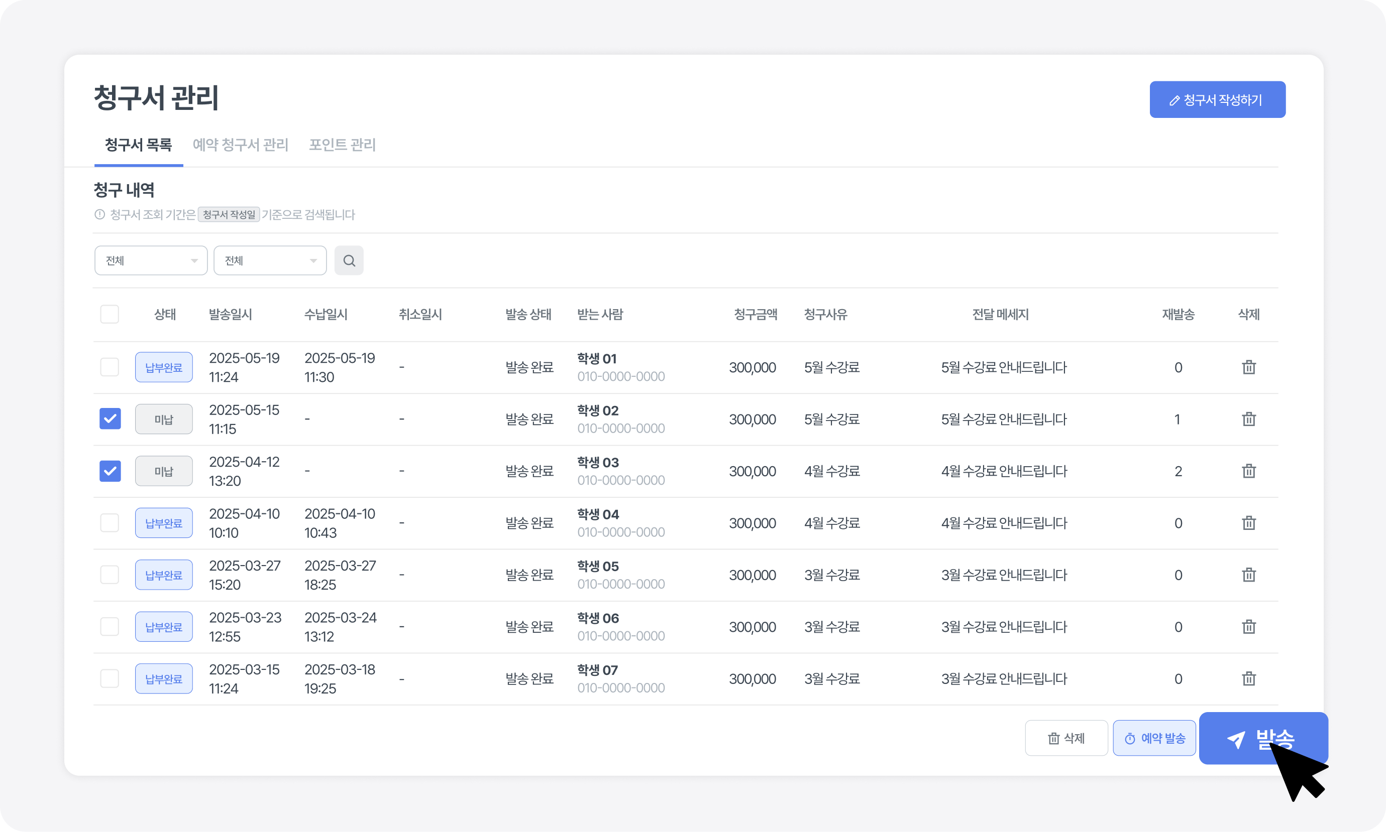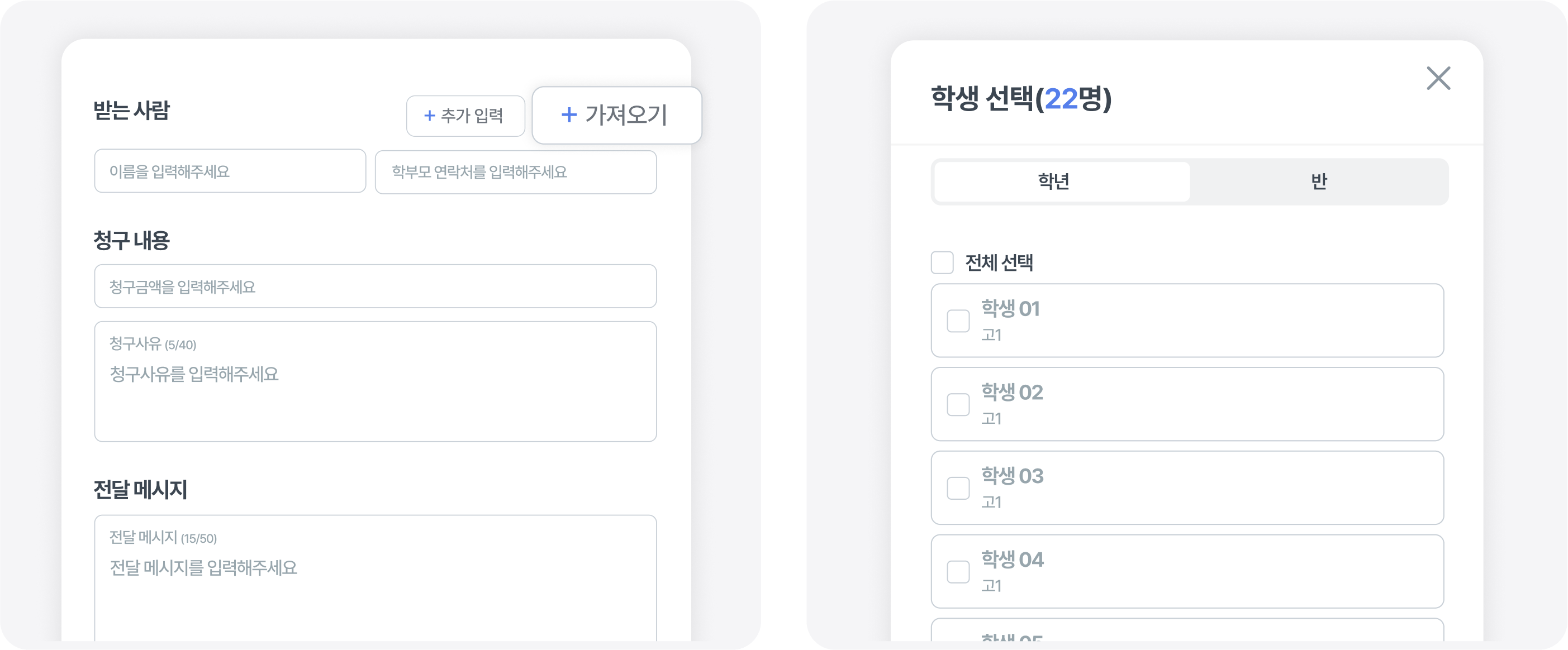 학생 수 제한없이 클릭 한 번이면 청구서 발송