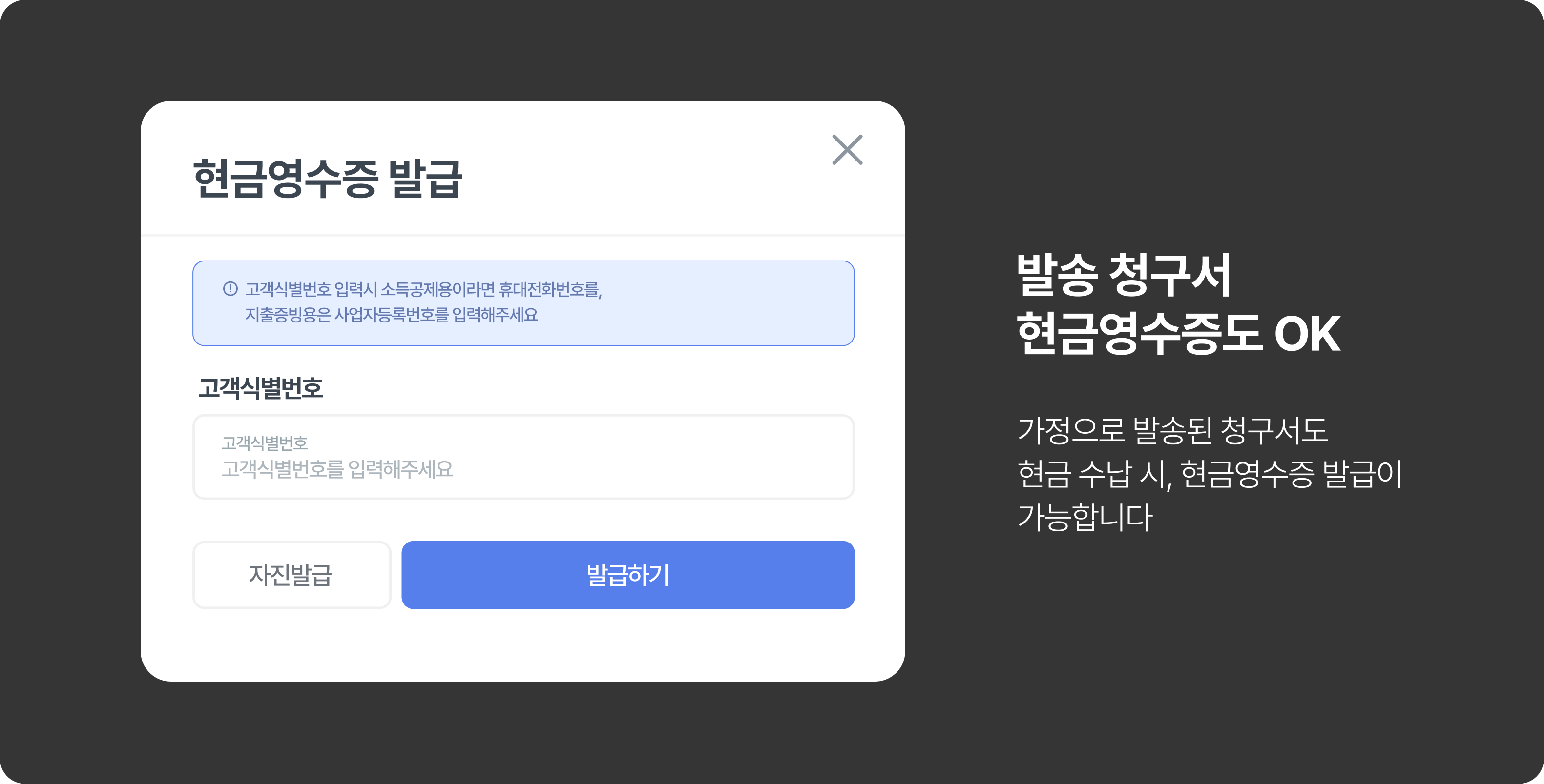 이미 발송된 청구서도 현금 수납시, 현금영수증 발행이 가능합니다